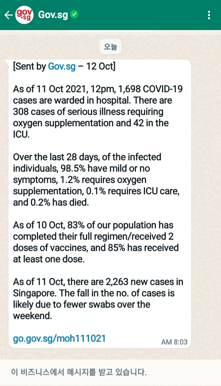 현재 싱가폴 코비드 상황입니다.
